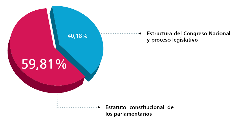 Las ideas registradas relativas al Congreso Nacional se agruparon en dos grandes subtemas: “Estructura del Congreso Nacional y proceso legislativo”, las que presentaron el 40,18% de la participación total de este tema, y “Estatuto constitucional de los parlamentarios”, con un 59,81% de las menciones.