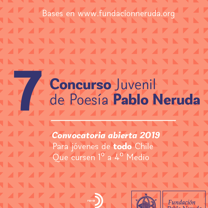 Con la finalidad de promover, difundir y estimular la joven poesía nacional, junto con la Fundación Pablo Neruda convocamos por séptima vez al “Concurso Juvenil de Poesía Pablo Neruda 2019”, para estudiantes secundarios de todo Chile. Este premio busca incentivar la poesía dentro del ámbito de la educación, apoyando la escritura de autores emergentes y fomentando la lectura de autores nacionales. También colaboran con este concurso el Instituto Nacional y el Archivo Central Andrés Bello de la Universidad de Chile.