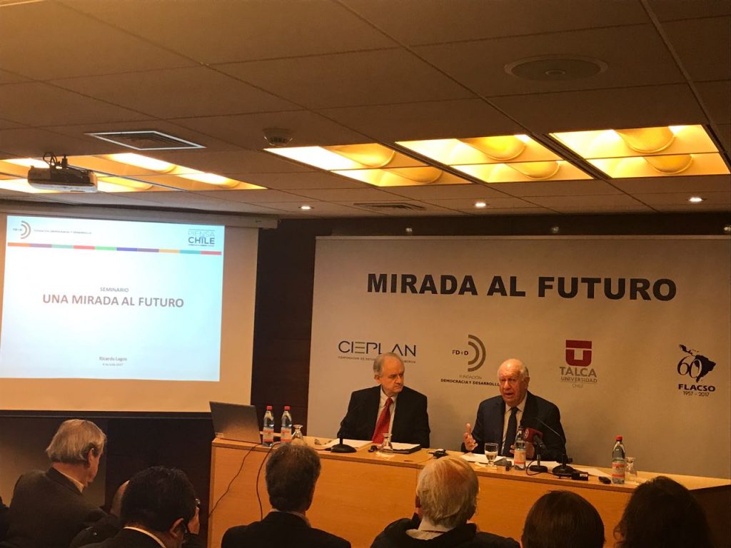 Ricardo Lagos, ex presidente de Chile, junto a Alejandro Foxley, presidente de CIEPLAN, encabezaron el seminario “Mirada al Futuro” organizado por CIEPLAN, Fundación Democracia y Desarrollo, FLACSO-Chile y la Universidad de Talca.