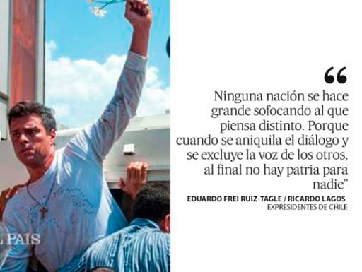 Columna escrita por los expresidentes chilenos Eduardo Frei y Ricardo Lagos quienes rechazan la condena a Leopoldo López y demandan su inmediata libertad.
