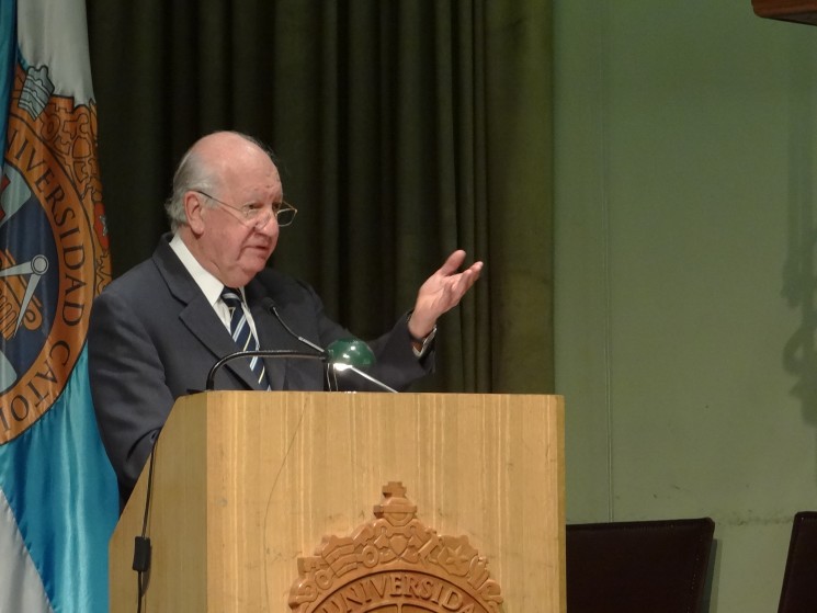 El ex Presidente Ricardo Lagos participó en el Coloquio “Encíclica Laudato Si` del Papa Francisco, que se desarrolló en el Aula Magna de la Casa Central de la Universidad Católica.